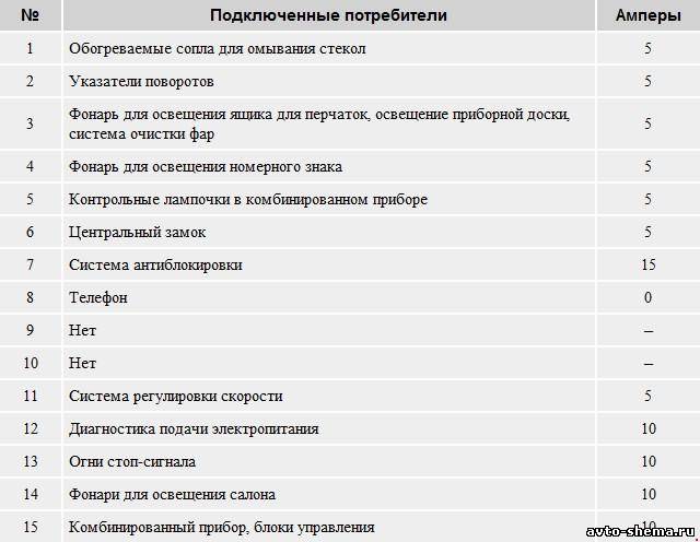 Если это не так, то по таблице предохранителей определите подключенные потребители и проверьте их по одному. В этом вам поможет соответствующая электрическая схема.