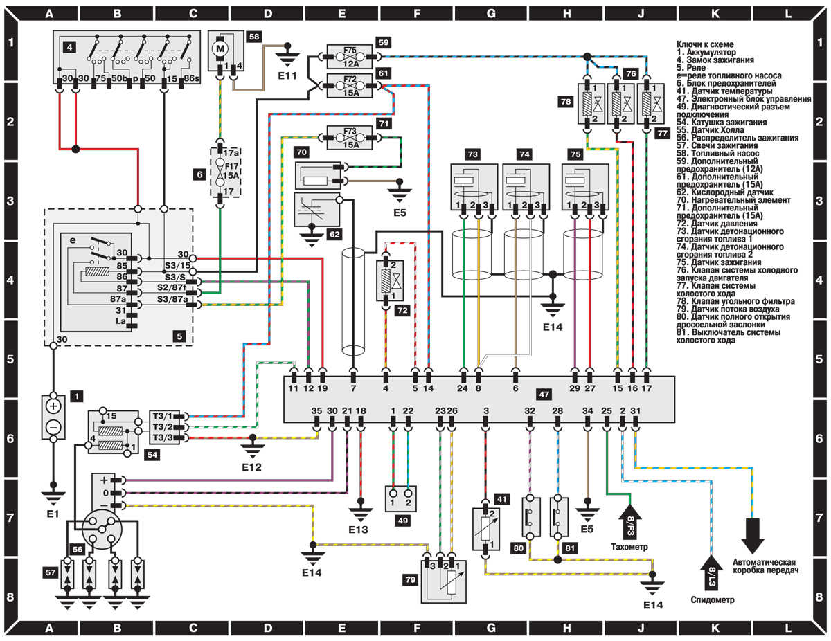 F14 15А Фонари заднего хода, стеклоотмыватели, круиз-контроль, блокировка дифференциала, многофункциональный датчик, датчик спидометра, водяной фильтр, автоматическая коробка передач