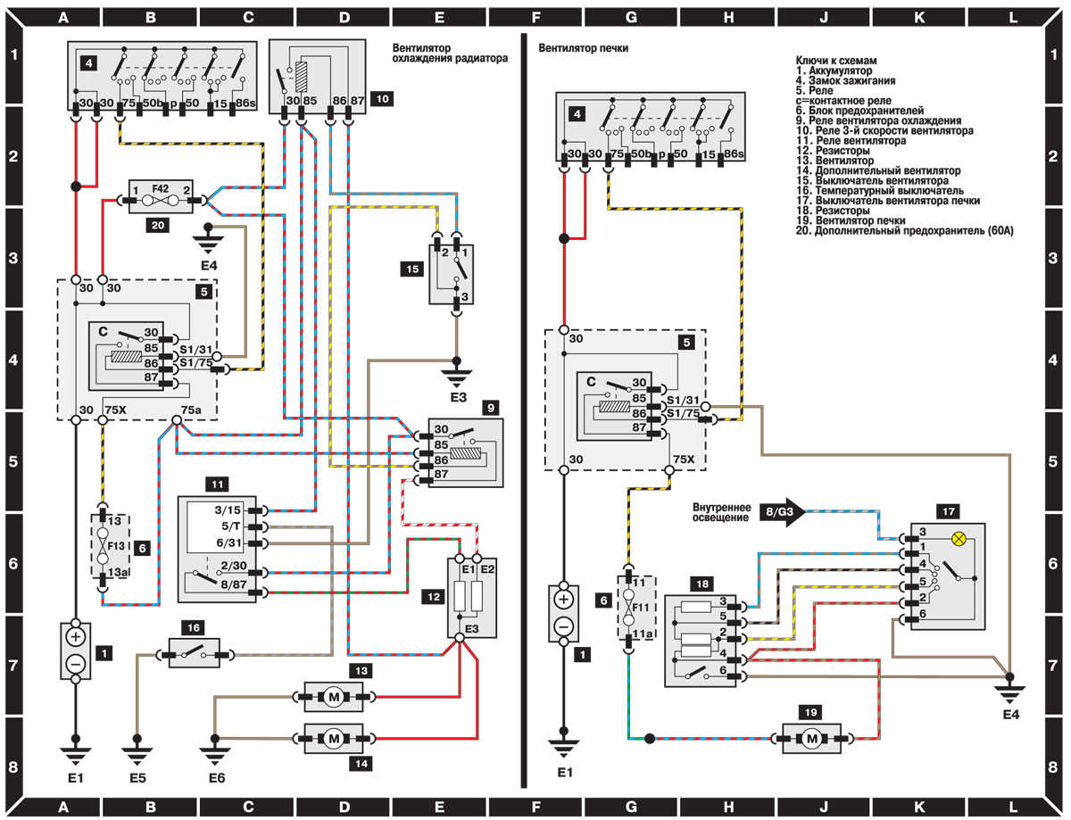 Вентилятор охлаждения радиатора и вентилятор печки — эл.схема