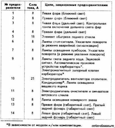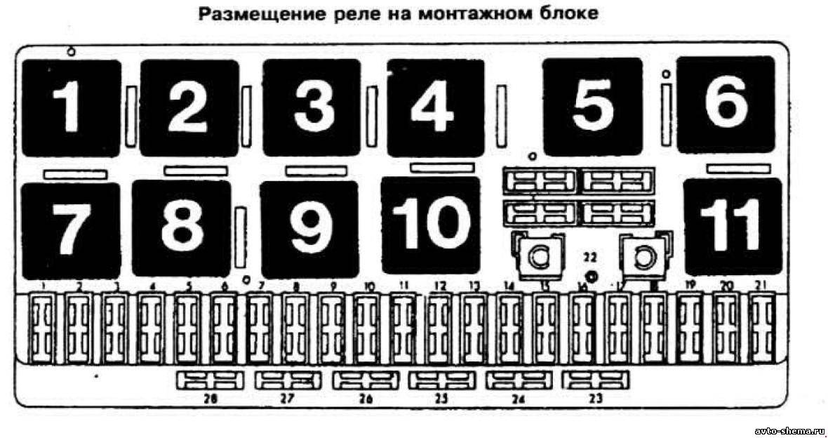 Схема автомобиля — Ауди 80 — реле и предохранители