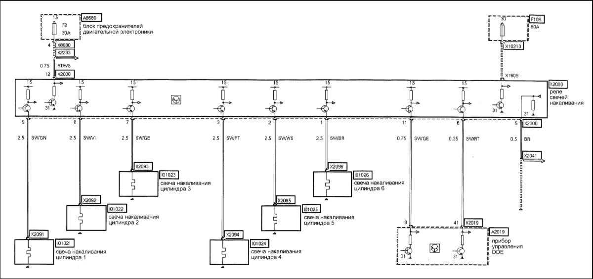 Схема свечей накаливания, и их реле на БМВ 5