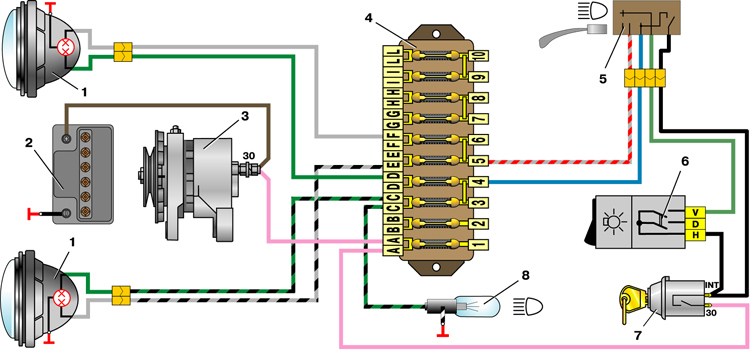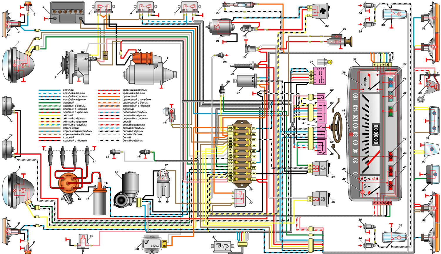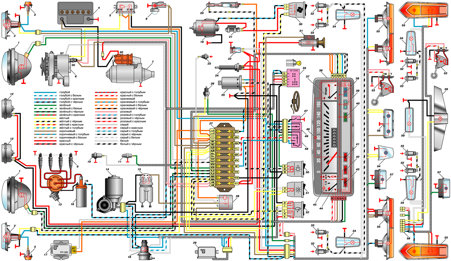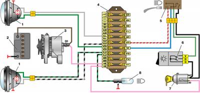 Электросхема оборудования автомобиля ВАЗ–2101, ВАЗ–2102