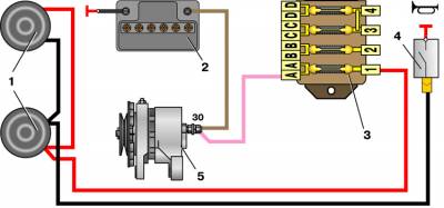 5 – реле контрольной лампы заряда аккумуляторной батареи;