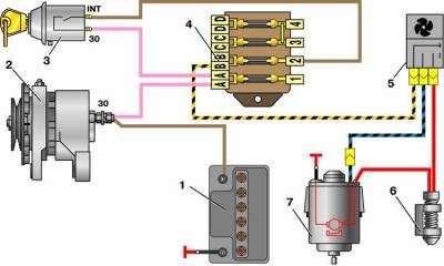 Схема включения электродвигателя вентилятора отопителя на Жигули 2101