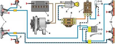 6 – блок предохранителей; 7 – реле-прерыватель указателей поворота;