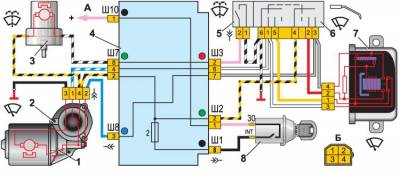 Б – порядок условной нумерации штекеров в колодках моторедуктора и реле очистителя
