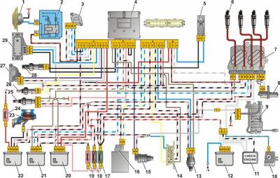 21 – блок управления электропневмоклапаном экономайзера принудительного холостого хода карбюратора;
