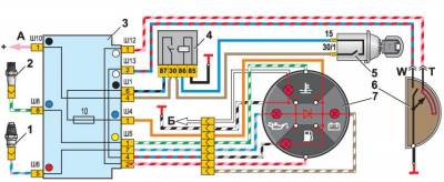 6 – реле-прерыватель указателей поворота и аварийной сигнализации;