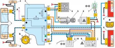 Электросхема включения указателей поворота и аварийной сигнализации на ВАЗ 2105
