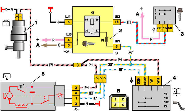 4 – переключатель очистителя и омывателя заднего стекла; 5 – моторедуктор очистителя заднего стекла;