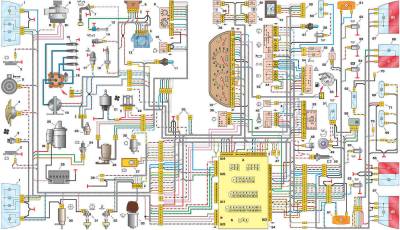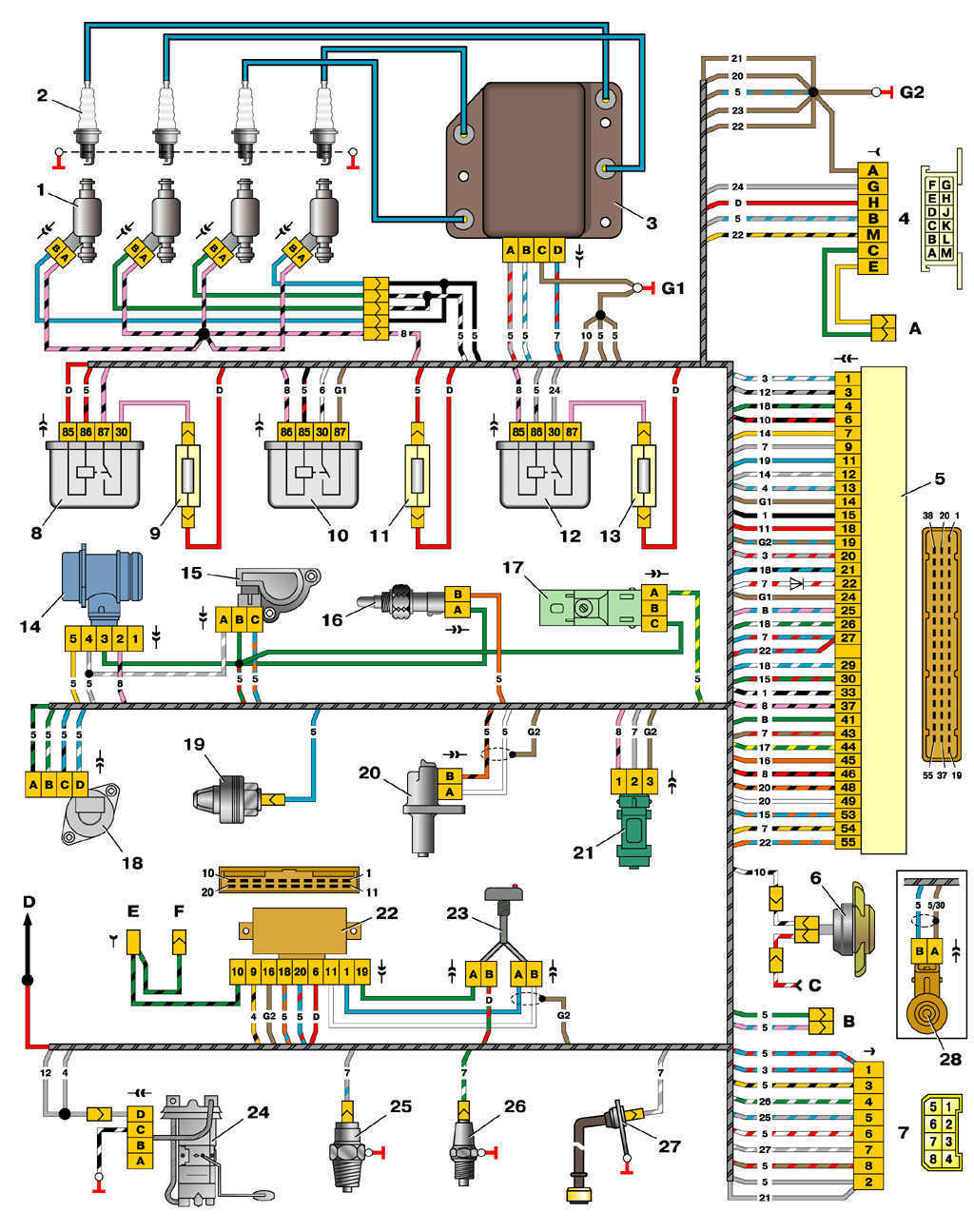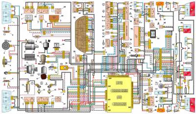 Схема соединений системы управления двигателем 2111 с распределенным впрыском топлива под нормы токсичности России автомобиля ВАЗ-21102