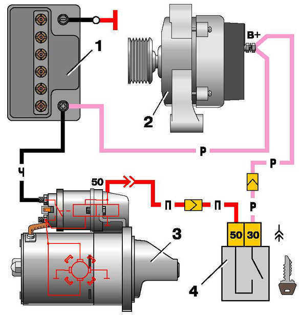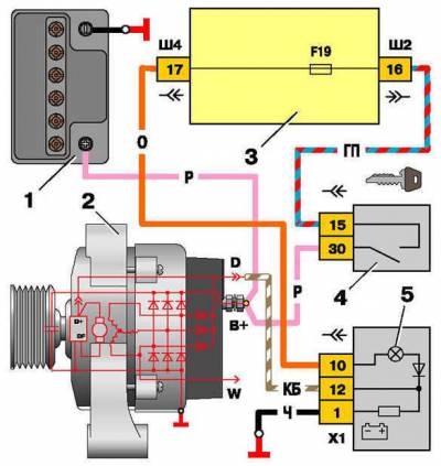 5 – контрольная лампа заряда аккумуляторной батареи, расположенная в комбинации приборов