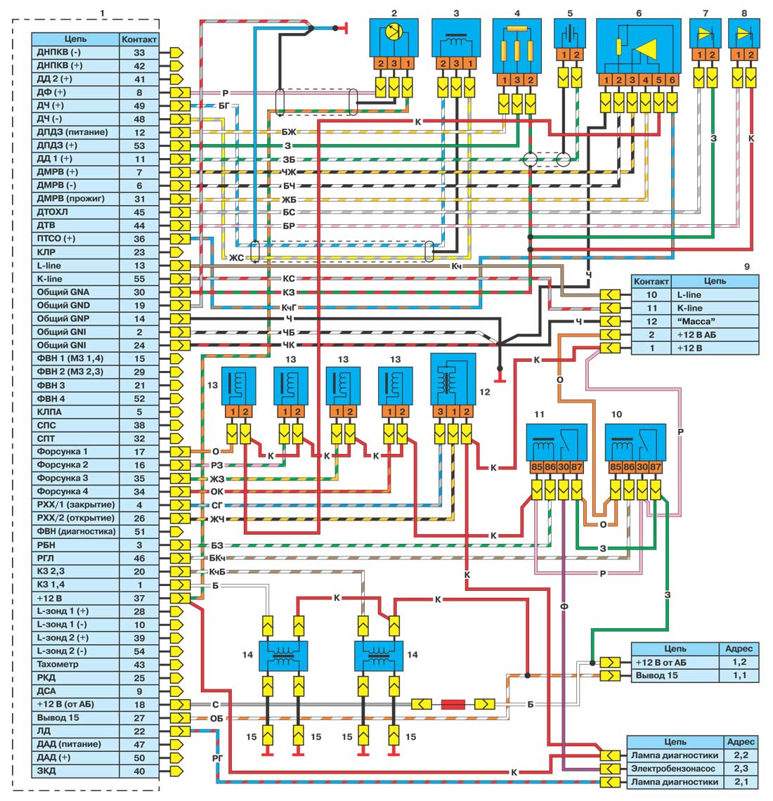 2 – датчик фазы 10 – реле системы управления двигателем