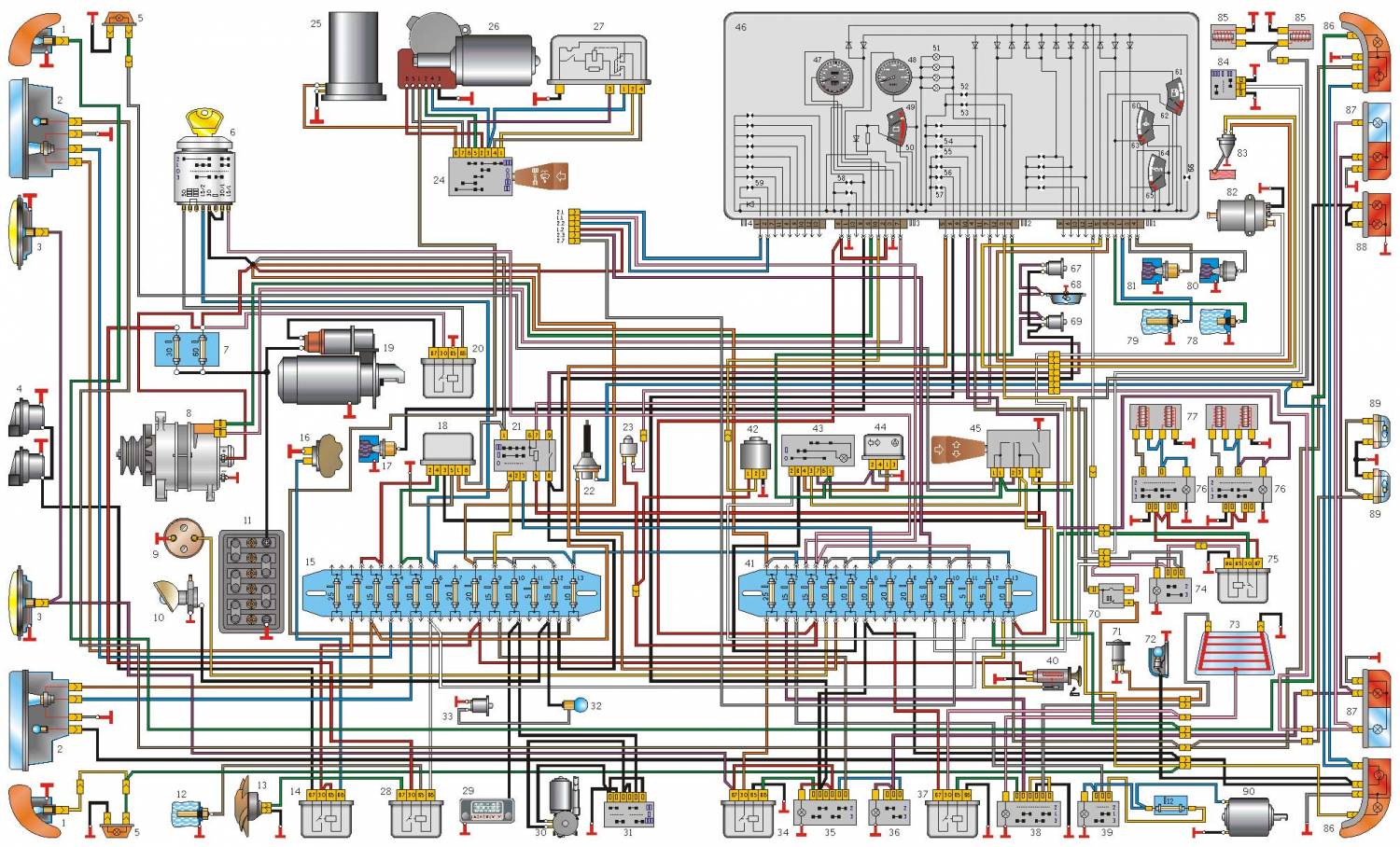 45 – переключатель указателей поворота 90 – электродвигатель вентилятора отопителя