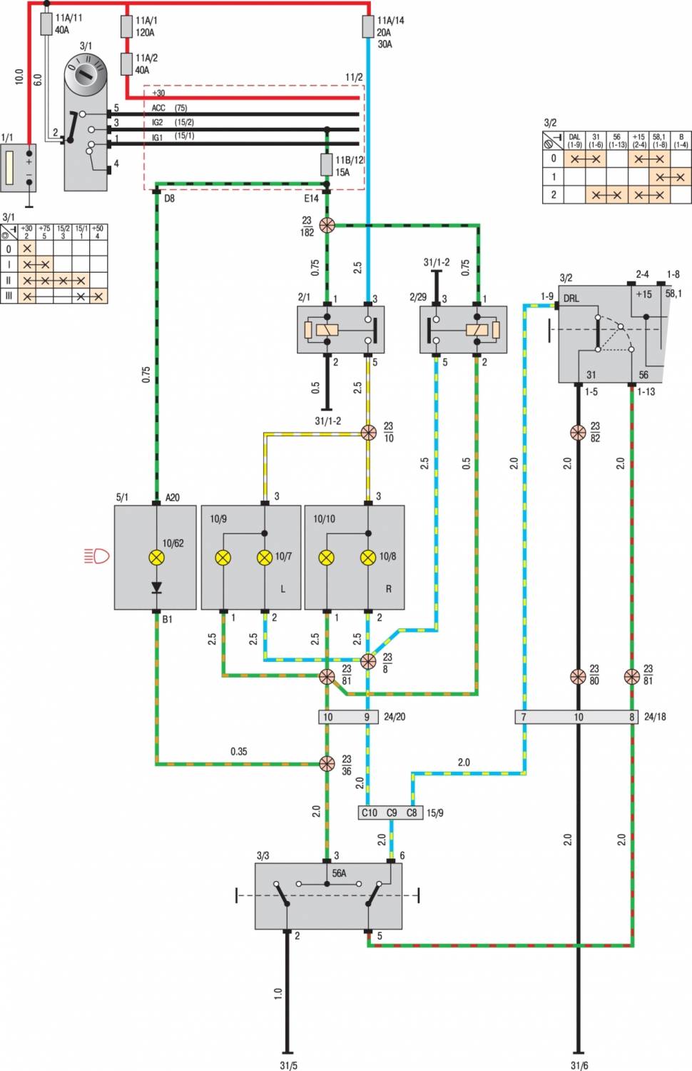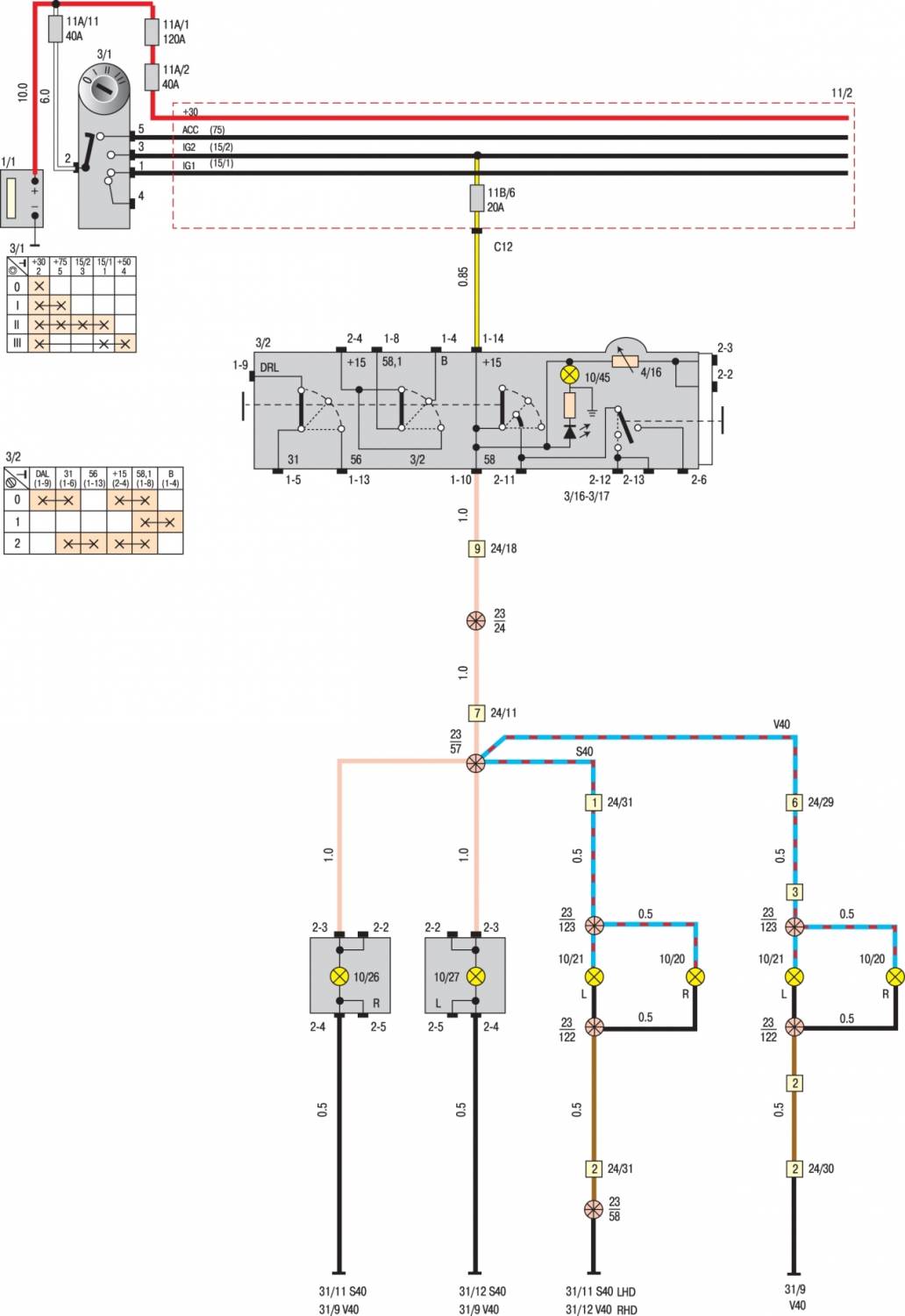 Электросхемы оборудования на Volvo S40 — базовая комплектация
