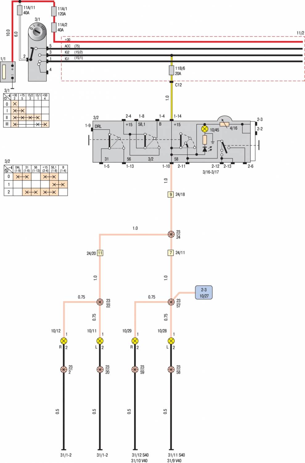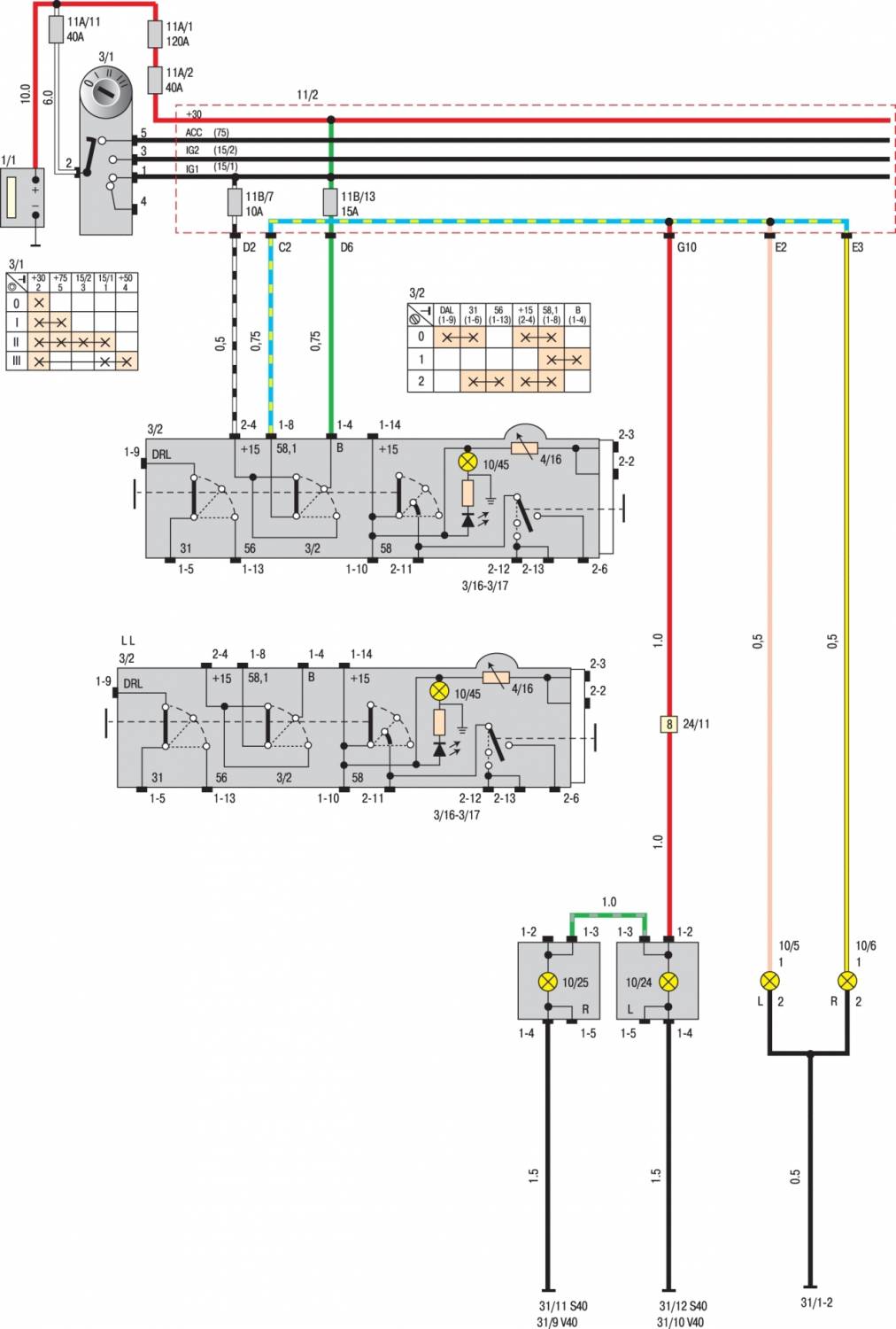 Представляем схемы электрооборудования, такой машины как Volvo S40 1996-2002 г.в. Volvo S40 — единственный автомобиль в своем классе, на который устанавливается надуваемая занавеска безопасности (IC) в стандарте для всех вариантов исполнения. Также устанавливается двухуровневая подушка безопасности. Множество изменений было сделано в ходовой части: новая подвеска передних колес, новые опоры двигателя, что значительно увеличивает комфорт при вождении, защиту от шума, а также управляемость на зимней дороге. Интерьер салона претерпел значительную модернизацию. Серьезно модифицировали центральную консоль: новая панель климат-контроля, новые положения органов управления, более удобная нижняя полка, новый дизайн аудиосистемы, органы управления окнами и зеркалами перенесены на двери. Добавили новую многофункциональную консоль над тоннелем, новые сидения и два новых вида обивки.