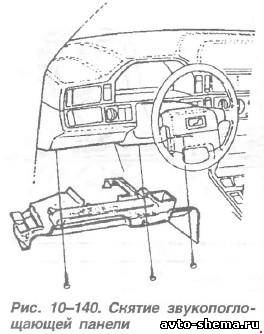 - Вывернуть три винта крепления звукопоглощающей панели (рис. 10-140).