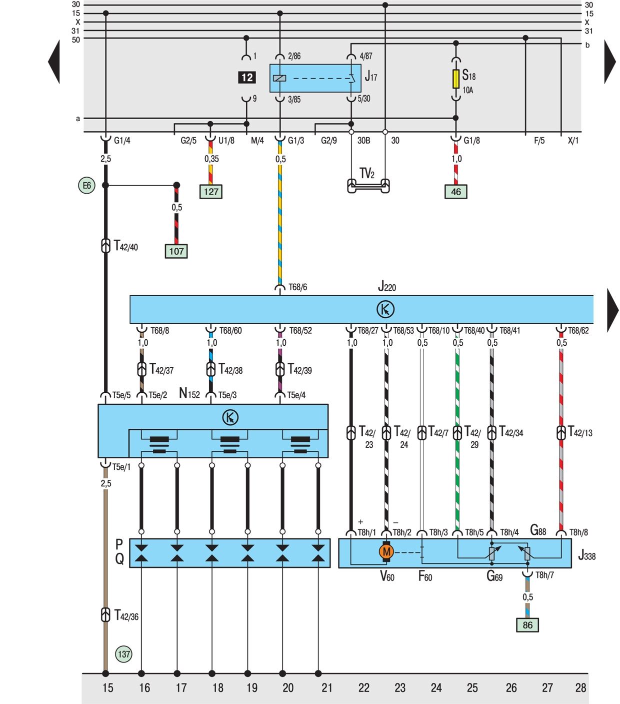 E7 Положительное соединение (87a), в жгуте проводов Motronic