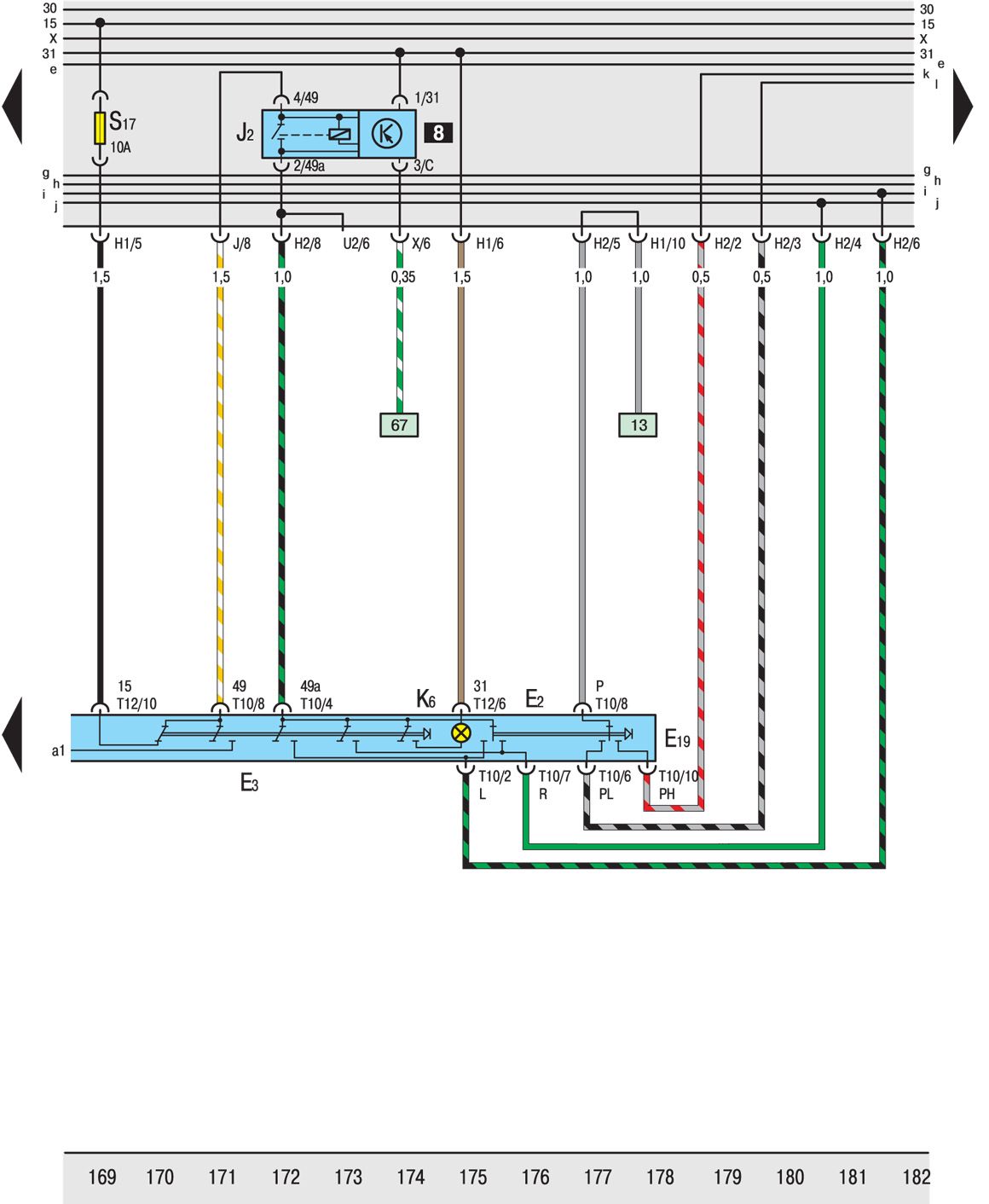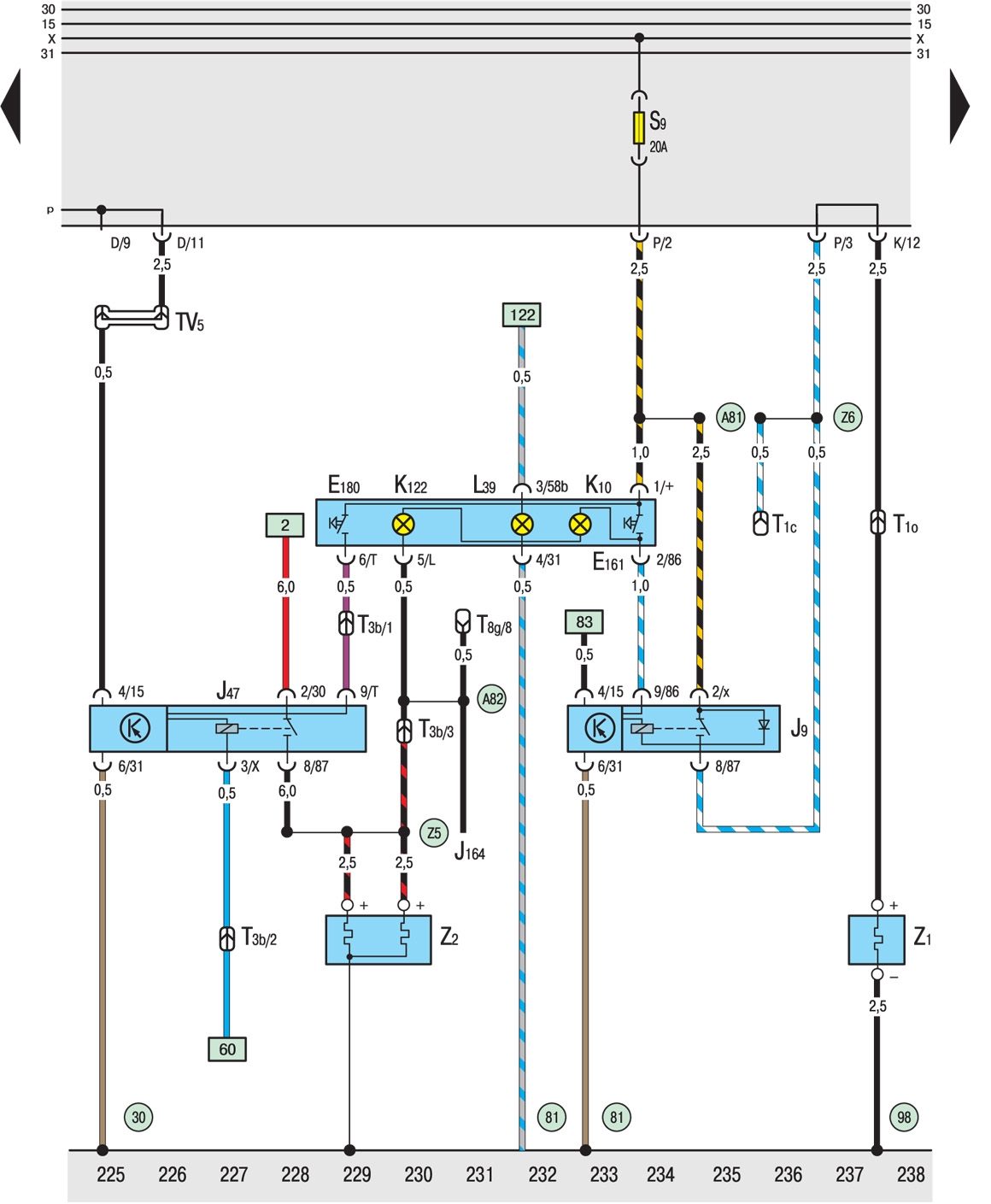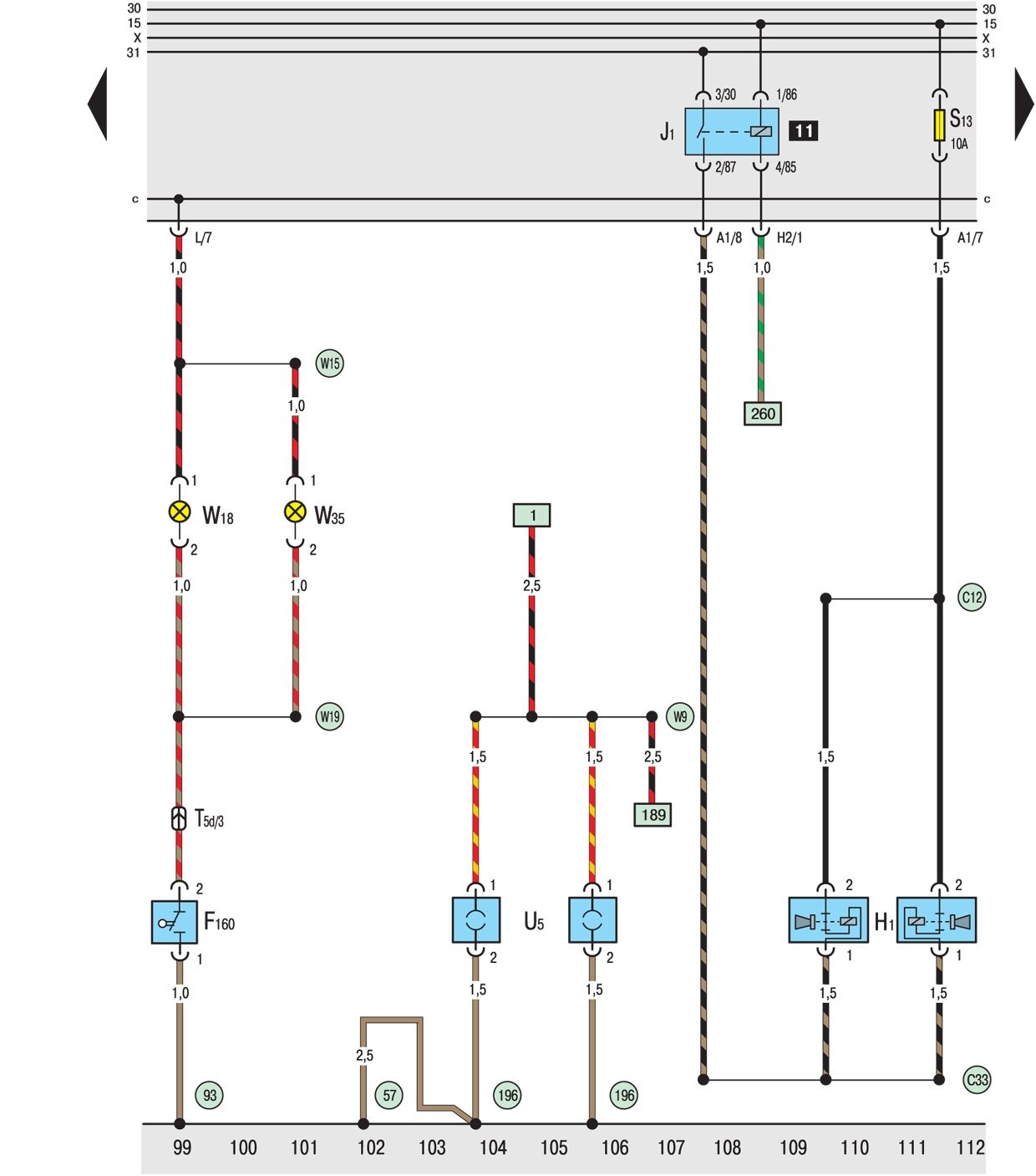 W9 Положительное соединение (30), в заднем жгуте проводов
