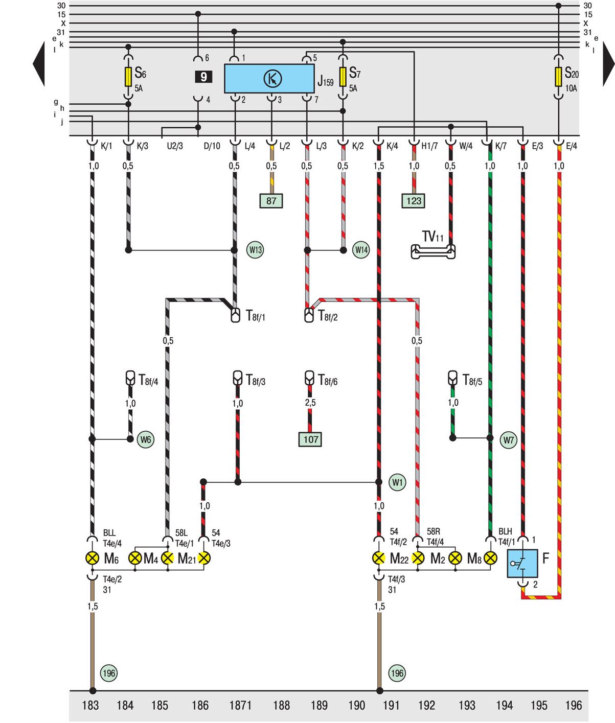 W7 Соединение (правый указатель поворота), в заднем жгуте проводов
