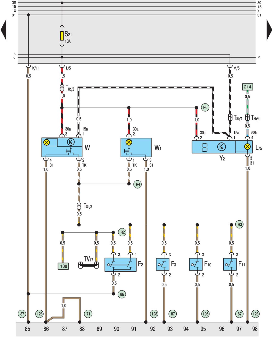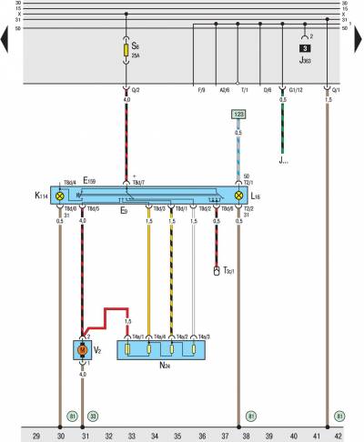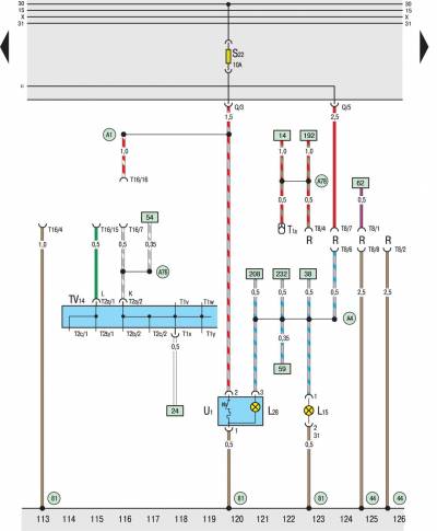TV2 Распределительная коробка для клеммы 30, за монтажной платой реле