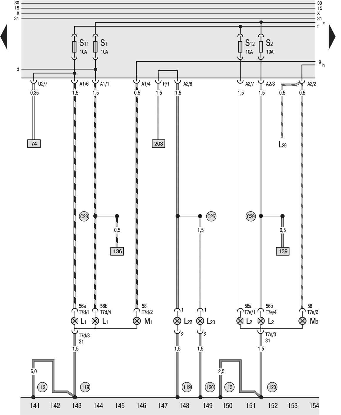 C12 Положительное соединение -1-, в жгуте проводов фары