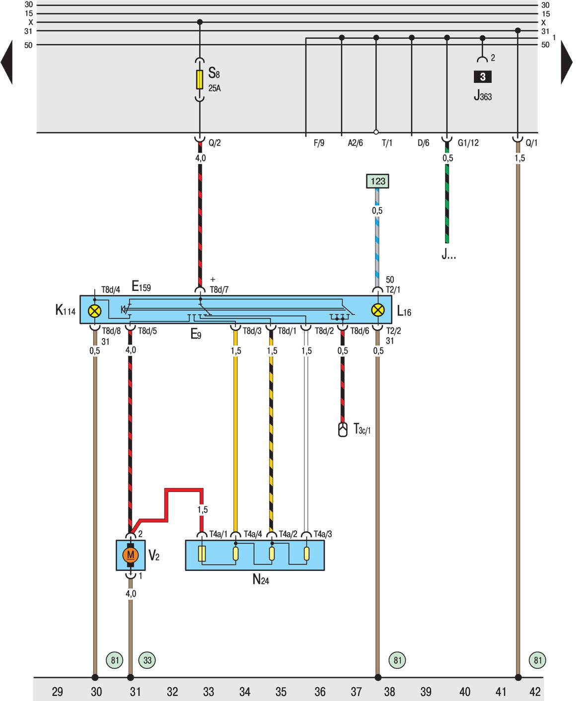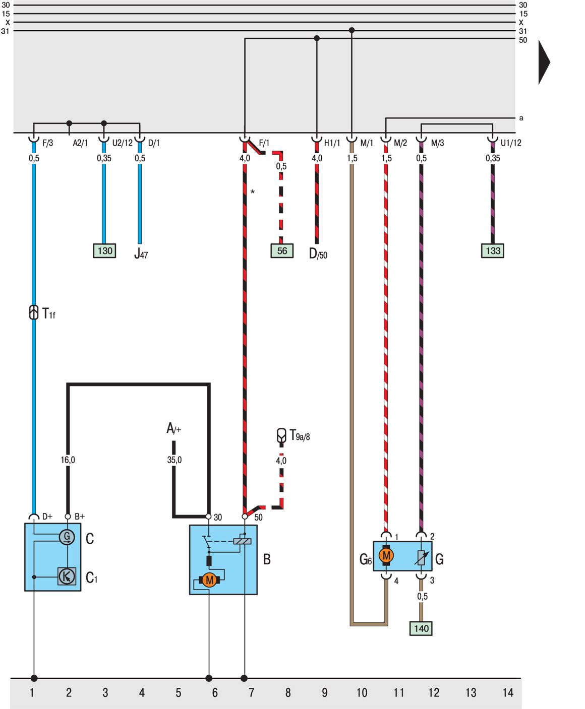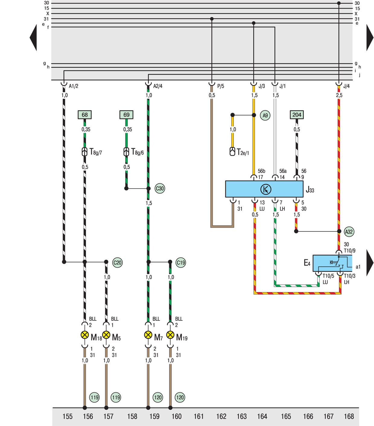 F33 Положительное соединение (30), в жгуте проводов системы впрыска