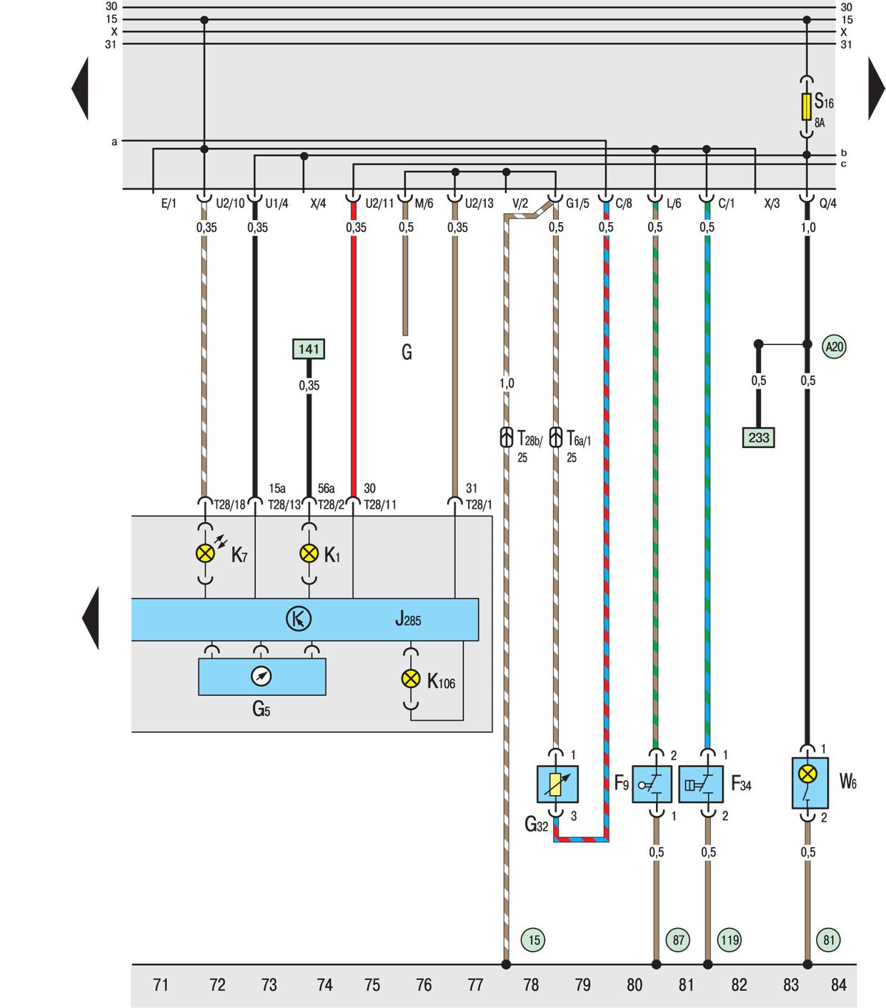 A20 Соединение (15a), в жгуте проводов панели приборов
