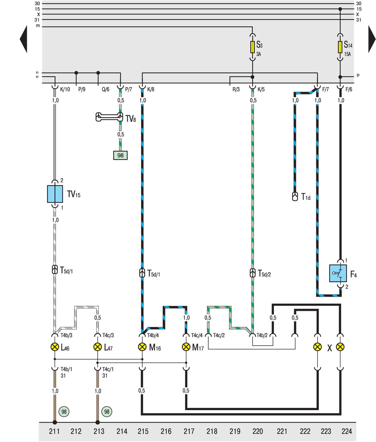 TV5 Распределительная коробка для клеммы 15а, за приборной доской, слева