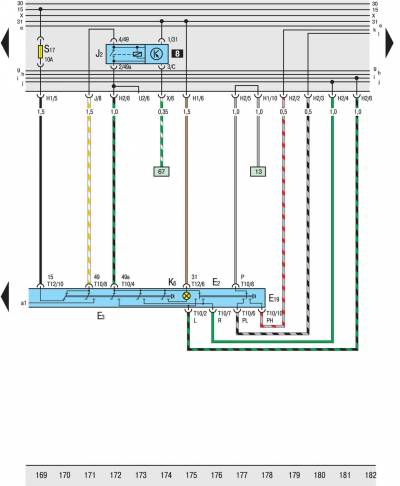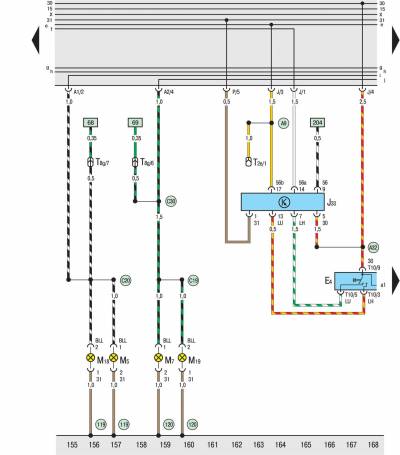 119 Соединение с массой -1-, в жгуте проводов фары