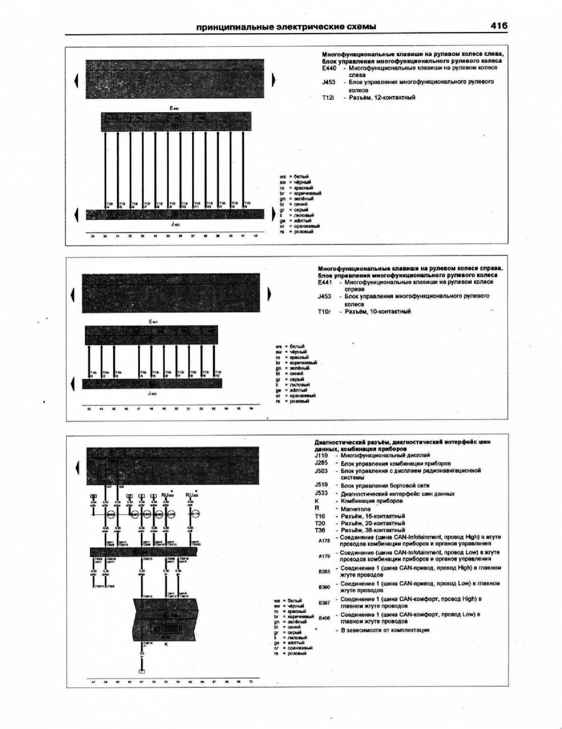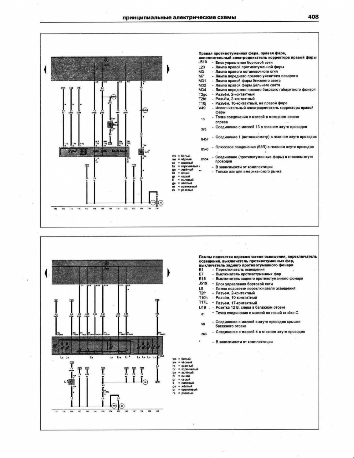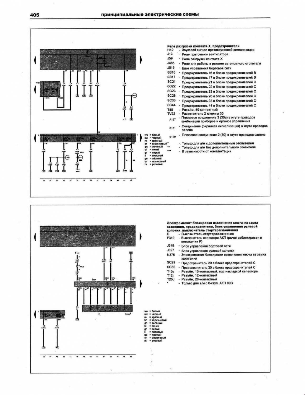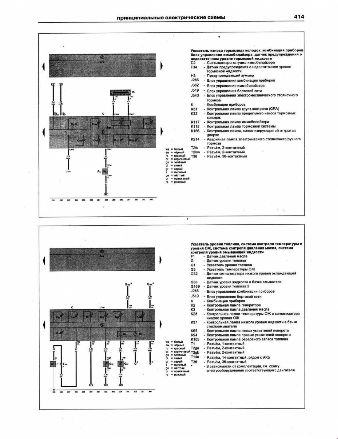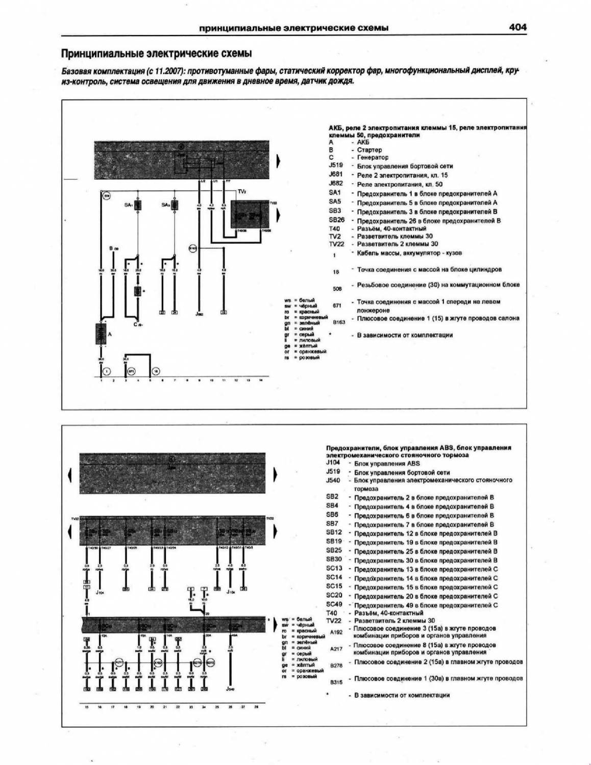 Поговорим немного о Volkswagen Tiguan с 2007 г.в. а именно о схемах электрооборудования к нему. Tiguan оснащается системой «старт-стоп», системой рекуперативного торможения, электронной системой стабилизации, системой помощи при спуске и подъеме, системой распознавания усталости водителя, зимним пакетом, шестью подушками безопасности. Предлагается в четырех комплектах — это, «Trend&Fun», «Track&Field», «Sport&Style», «Track&Style».