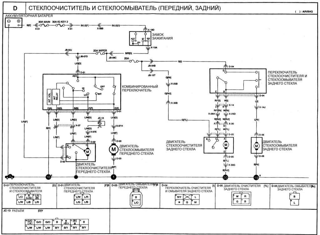 Стеклоочиститель и стеклоомыватель, передний и задний — схема