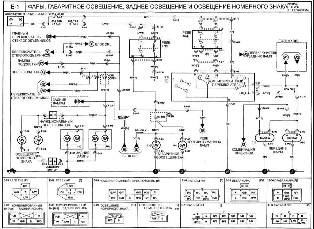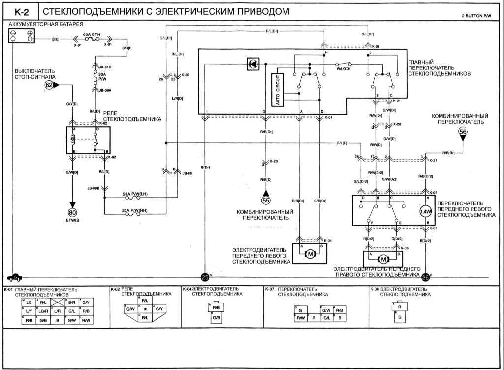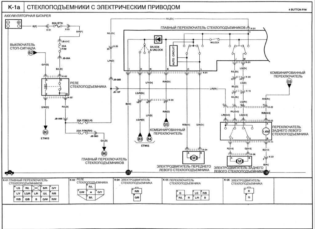 Электрические схемы проводок и др. на Kia Clarus 1995 — 2001 г.в. Этот автомобиль проектировался в тесном сотрудничестве с Mazda, так что во многом Clarus технически очень схож с Mazda 626 1992 — 1997 годов выпуска. Несмотря на то, что Киа Кларус еще молод, можно сказать о неплохой коррозионной устойчивости. Качество лакокрасочного покрытия хотя и не дотягивает до японо-европейских идеалов, все же находится на достаточно высоком уровне. Салон не поражает ни смелостью дизайна, ни качеством отделочных материалов, хотя в целом все красиво и удобно. Двигатели, устанавливаемые на Kia Clarus практически идентичны «маздовским», то есть с надежностью и долговечностью все в полном порядке, главное не забывать вовремя проходить ТО. Подвеска в меру комфортабельна, к тому же достаточно вынослива и не требует частых вмешательств. Единственное, что может доставить неприятности, при эксплуатации Киа Кларус в отечественных условиях — это электрика, портящаяся под воздействием соляных ванн.