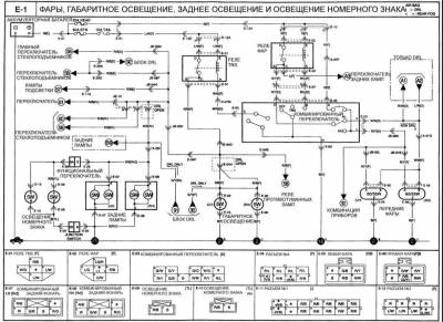 Фары, габаритное освещение, заднее освещение и освещение номерного знака — эл.схема