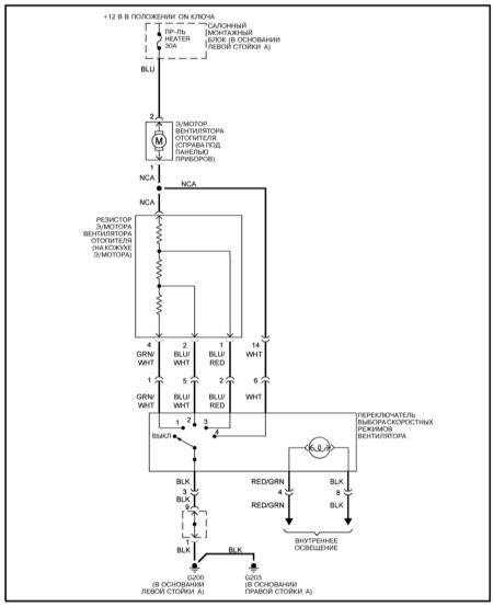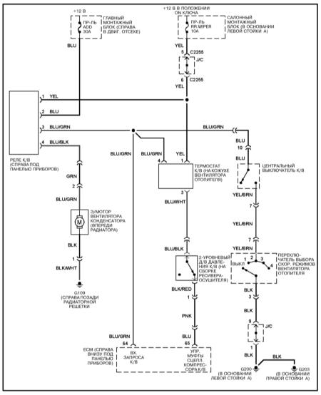 Вентилятор конденсатора К/В — электросхема
