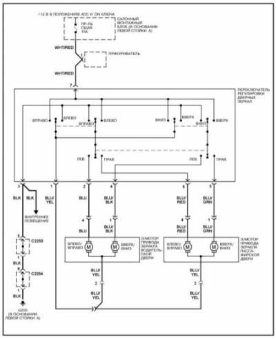 Электропривод дверных зеркал — схема