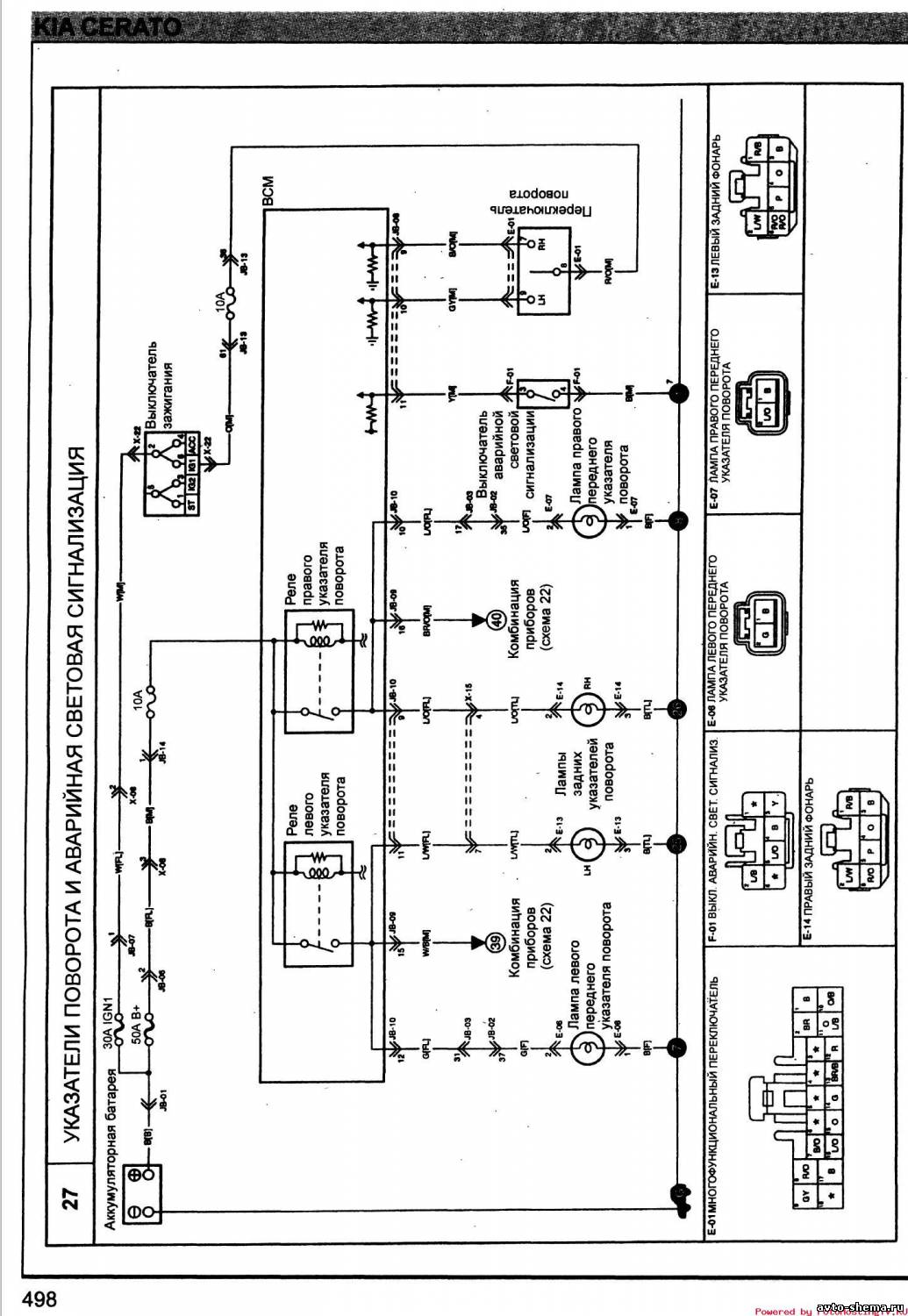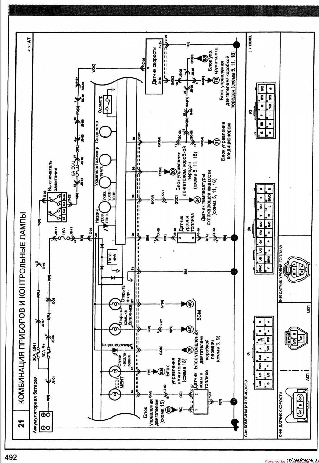 В данной статье, мы выложили всевозможные схемы электрооборудования на KIA Cerato с 2003 г.в. и младше. Создавая в сотрудничестве дизайнерских подразделений новый Kia Cerato, создатели учли пожелания самых требовательных клиентов. Вид спортивного облика сохранен, но теперь еще больше внимания уделено элегантности и выразительности. Характерное для всех моделей Kia, разработанных под руководством Питера Шраера, фирменное решение дизайна радиаторной решетки «пасть тигра» — делает Cerato однозначно узнаваемым и подчеркивает его принадлежность к марке, а стремительные линии кузова исполнены в популярной в наши дни стилистике «спортивного купе».