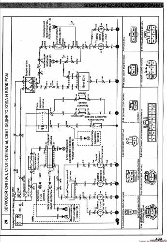 Электросхема звукового сигнала, стоп-сигнала, света заднего хода и блока ЕСМ