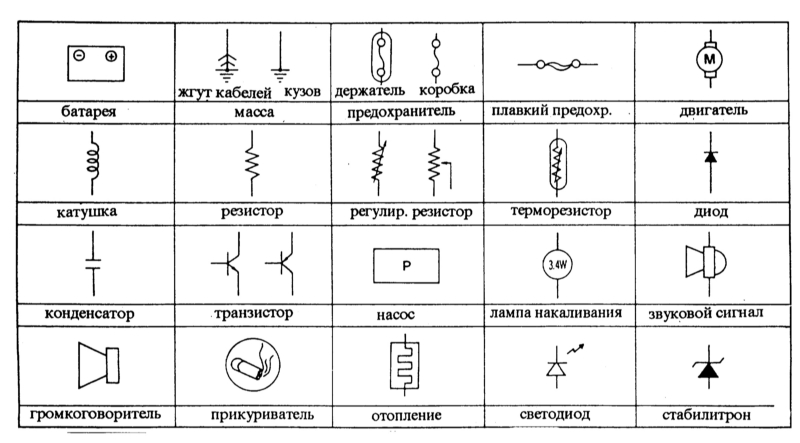 Если требуется найти неисправность в электрической системе или дополнительно установить электрооборудование, не обойтись без схемы, изображающей протекание тока и кабельные соединения. Соответствующий контур тока должен быть обязательно замкнут, иначе ток не будет протекать. Например, не достаточно, когда к плюсовой клемме фары напряжение прикладывается, а контур на контакте массы не замкнут. Поэтому кабель массы батареи соединен с кузовом. Однако этого соединения с массой недостаточно, и соответствующий потребитель имеет непосредственно провод массы, чья изоляция, как правило, имеет черный цвет. В отдельные контуры тока могут быть встроены выключатели, реле, предохранители, измерительные приборы, электромоторы или другие электрические элементы. Чтобы иметь возможность подключать эти приборы правильно, отдельные кабели имеют разные цвета.