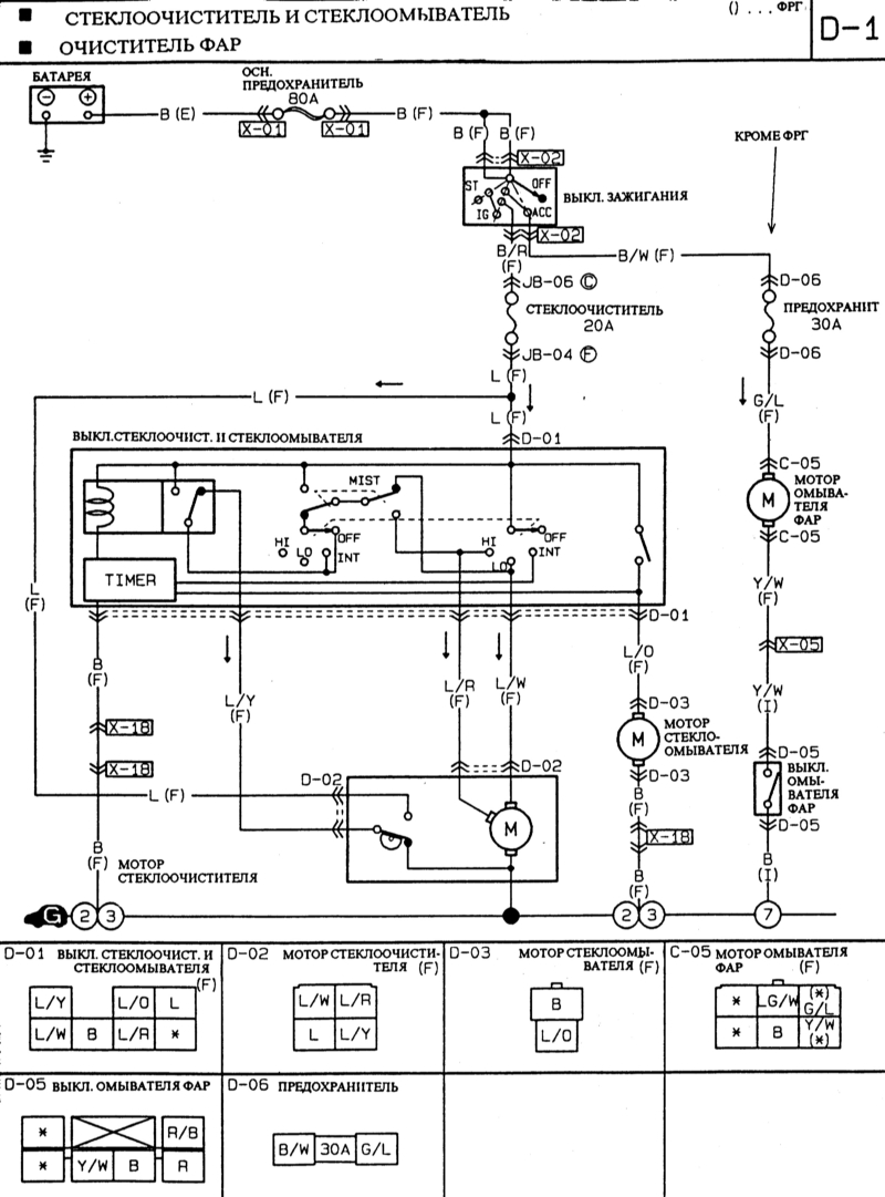 Стеклоочиститель и стеклоомыватель. Очиститель фар — эл.схема