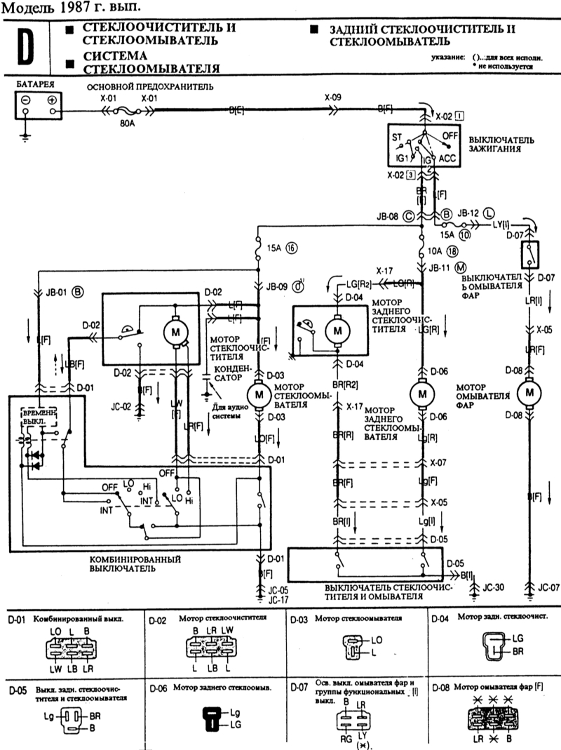jb-8 освещение замка зажигания, задний стеклоочиститель, омыватель, обогреватель заднего стекла