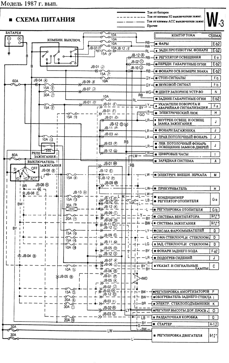 jb-7 приборный щиток, управление автоматической коробки передач, сигналы поворотов, центральное запорное устройство, боковые габаритные огни, фонари освещения номерного знака, подогрев сидений, задний стеклоочиститель, омыватель