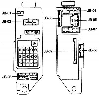 jb-5 управление двигателя, отопитель, кондиционер, управление автоматической коробки передач, фонари заднего хода, задний стеклоочиститель, омыватель, задние габаритные огни, указатели поворота