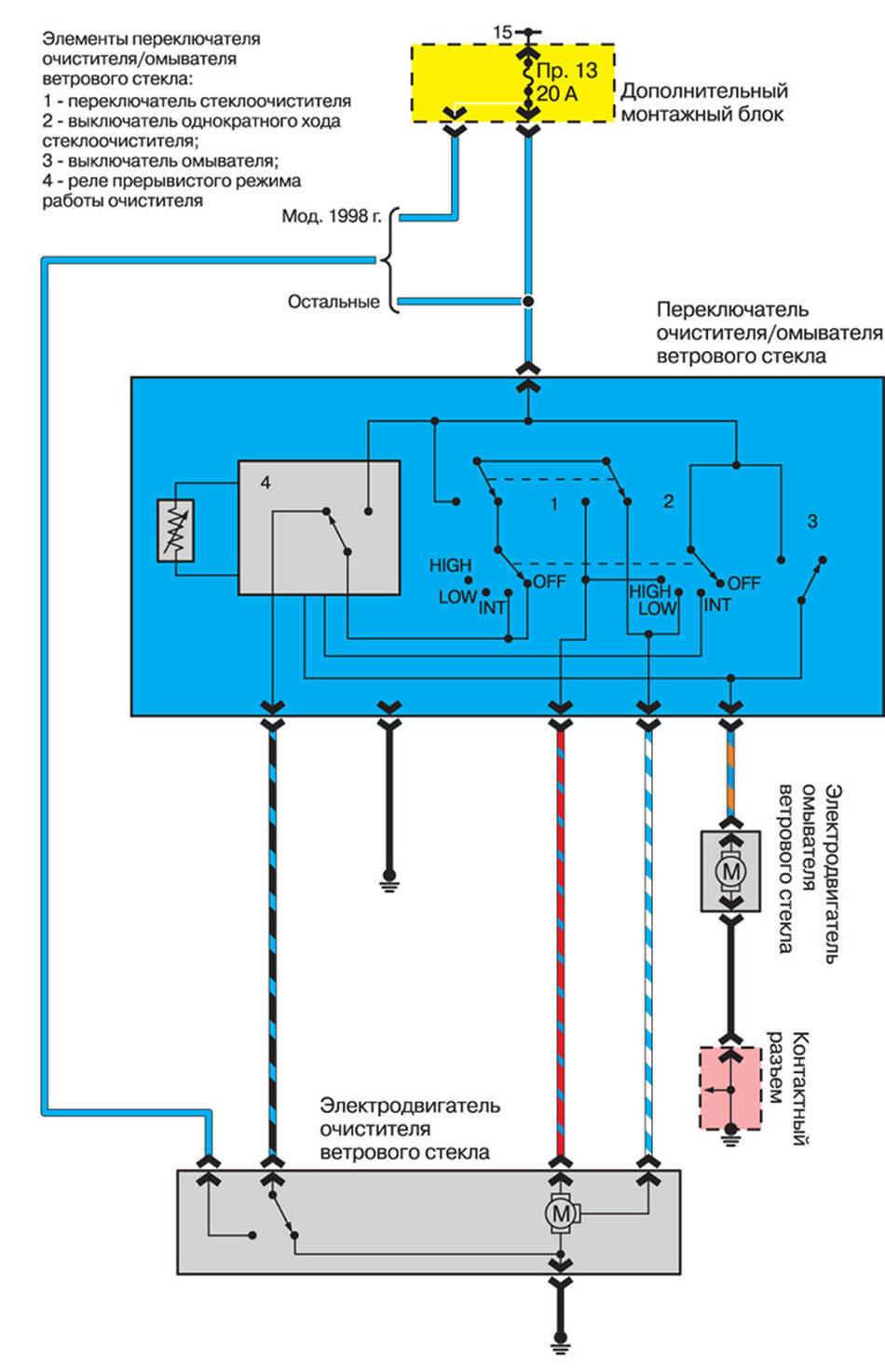Стеклоочистители и омыватели лобового стекла — эл.схема