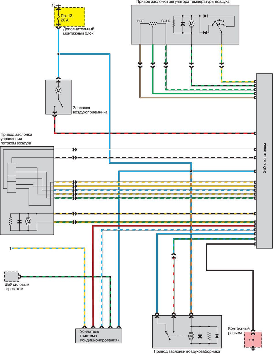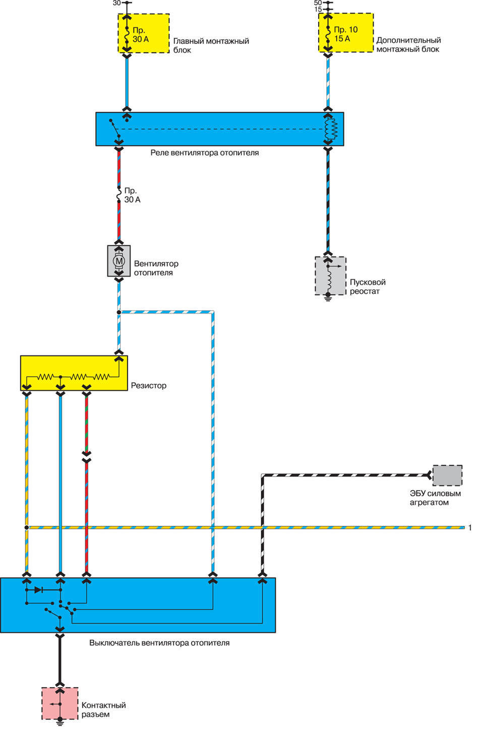 Печка и кондиционер (включая вентилятор охлаждения двигателя) — схема на Мазда 626