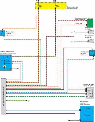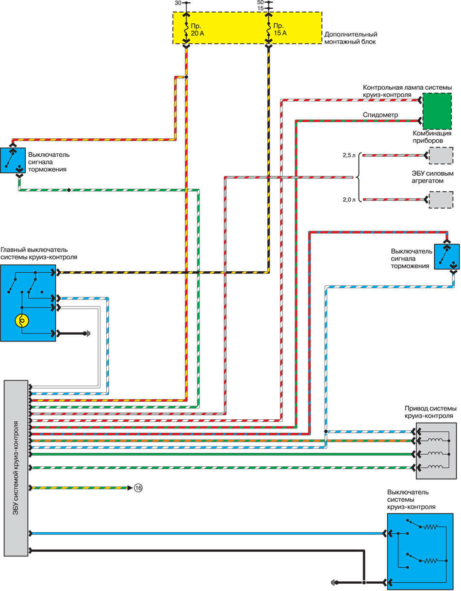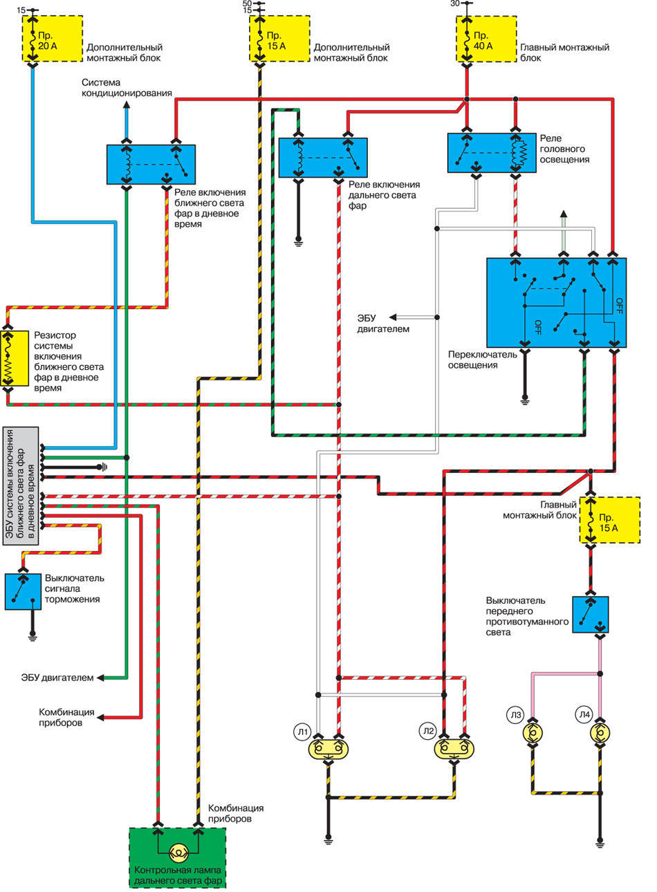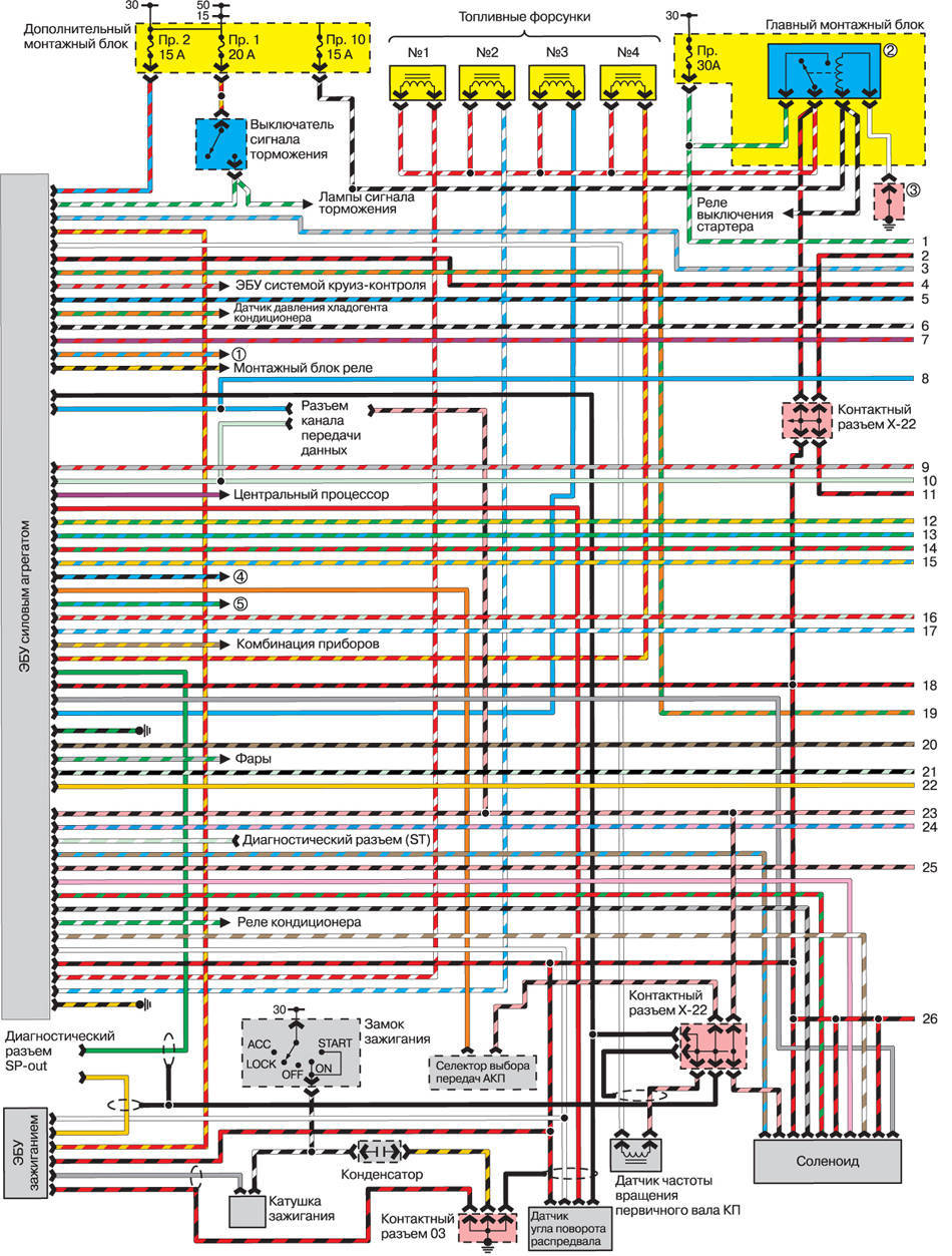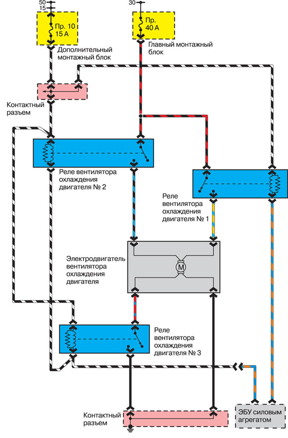 Схема системы запуска двигателя и подзарядки аккумулятора