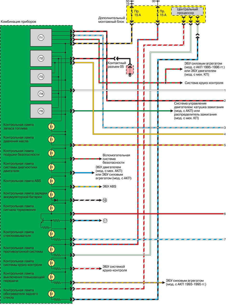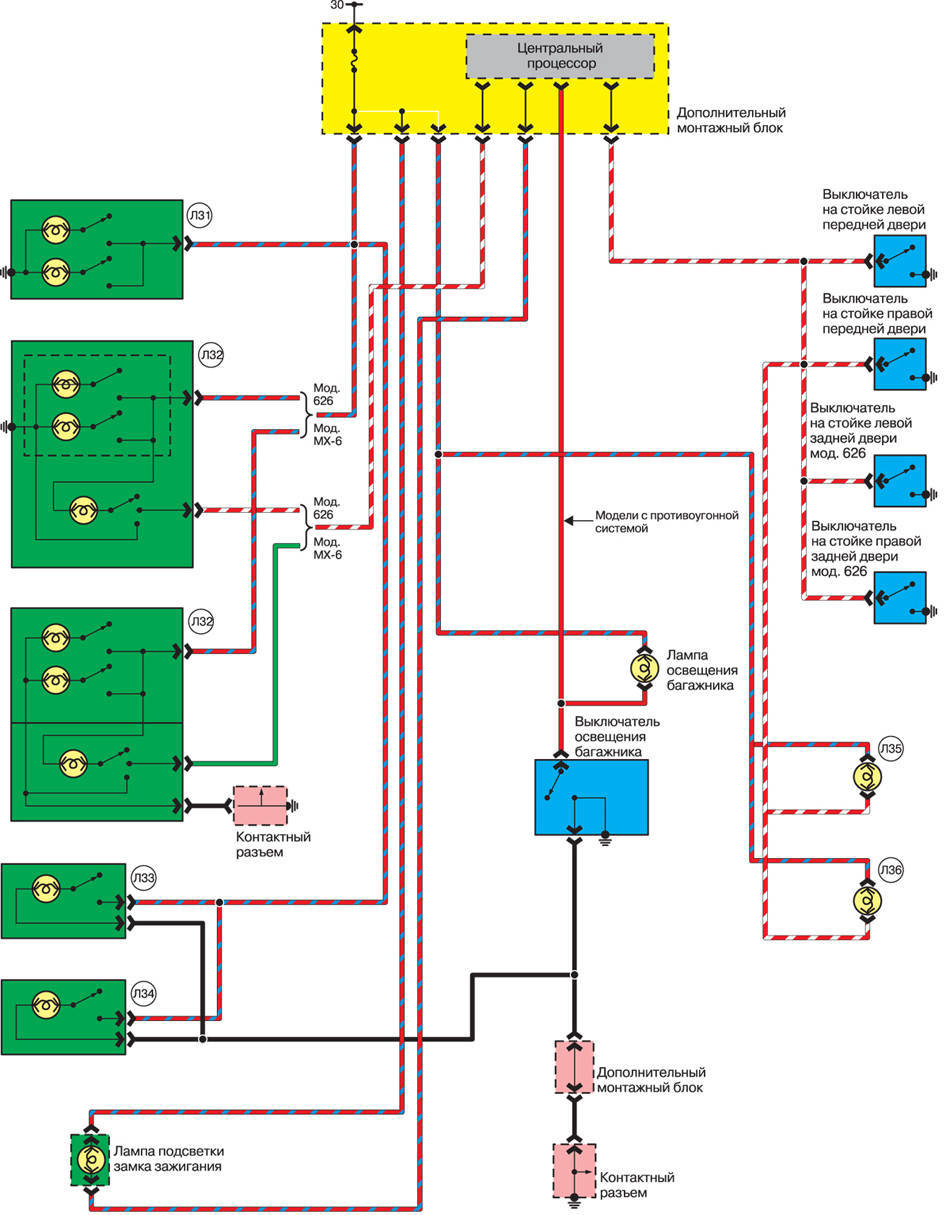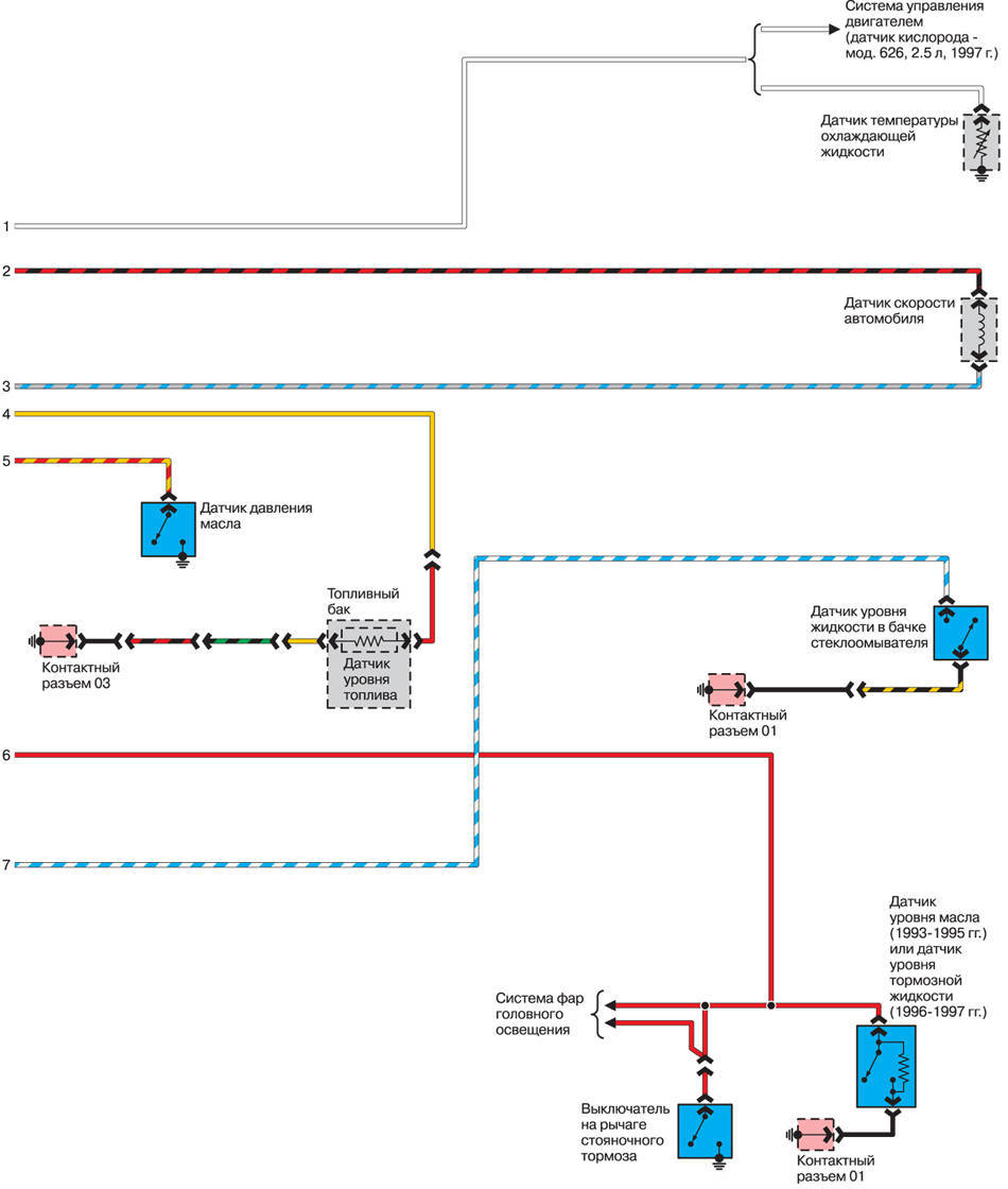 Датчики приборного щитка и сигнальные лампочки — эл.схема на Mazda 626
