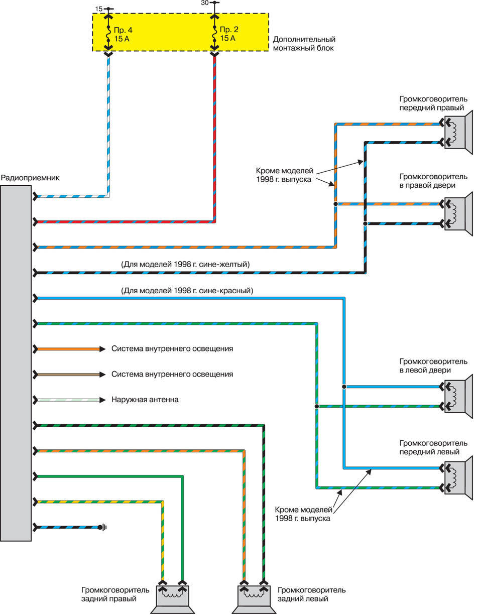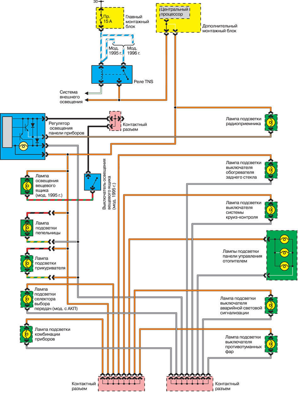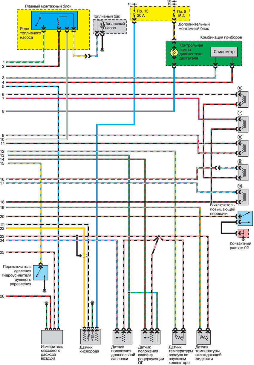 Датчики приборного щитка и сигнальные лампочки — эл.схема на Mazda 626