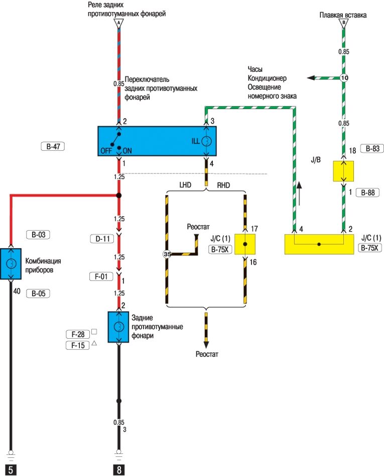 Задние противотуманные фонари — схема на Митсубиси Каризма