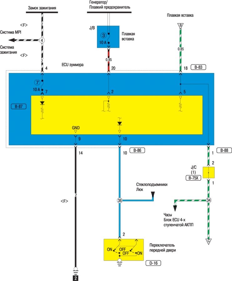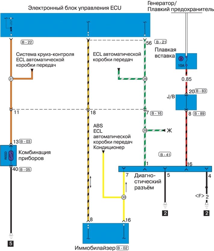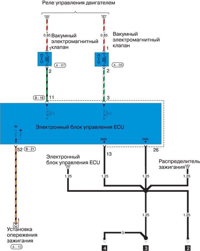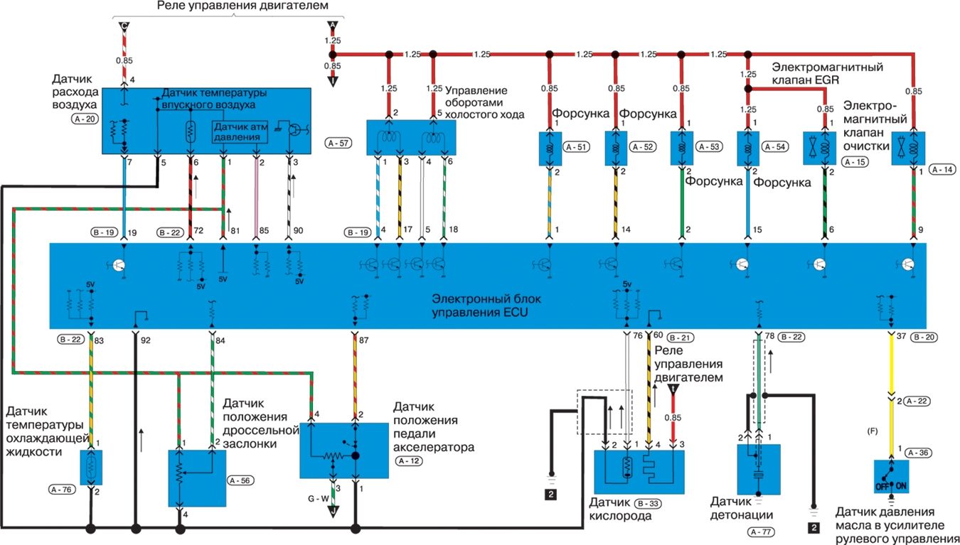 Электросхема системы впрыска топлива MPI-SOHC